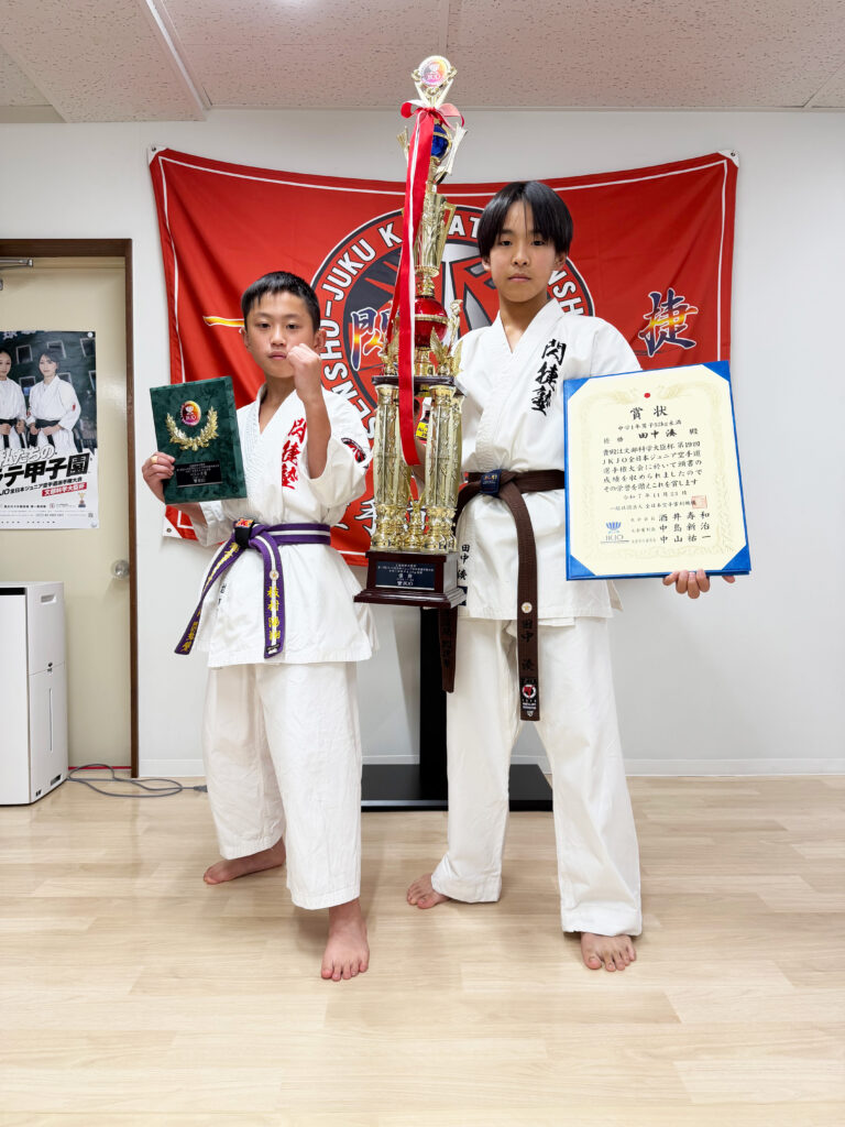 【文部科学大臣杯第19回JKJO全日本ジュニア空手道選手権大会】入賞者 2025年12月2日 最終更新日時 : 2025年12月3日 senshojuku 文部科学大臣杯第19回JKJO全日本ジュニア空手道選手権大会入賞者◎中学1年男子52kg未満の部優勝 田中 湊◎小学1年男子42kg未満の部ベスト8 枝村 陽翔
