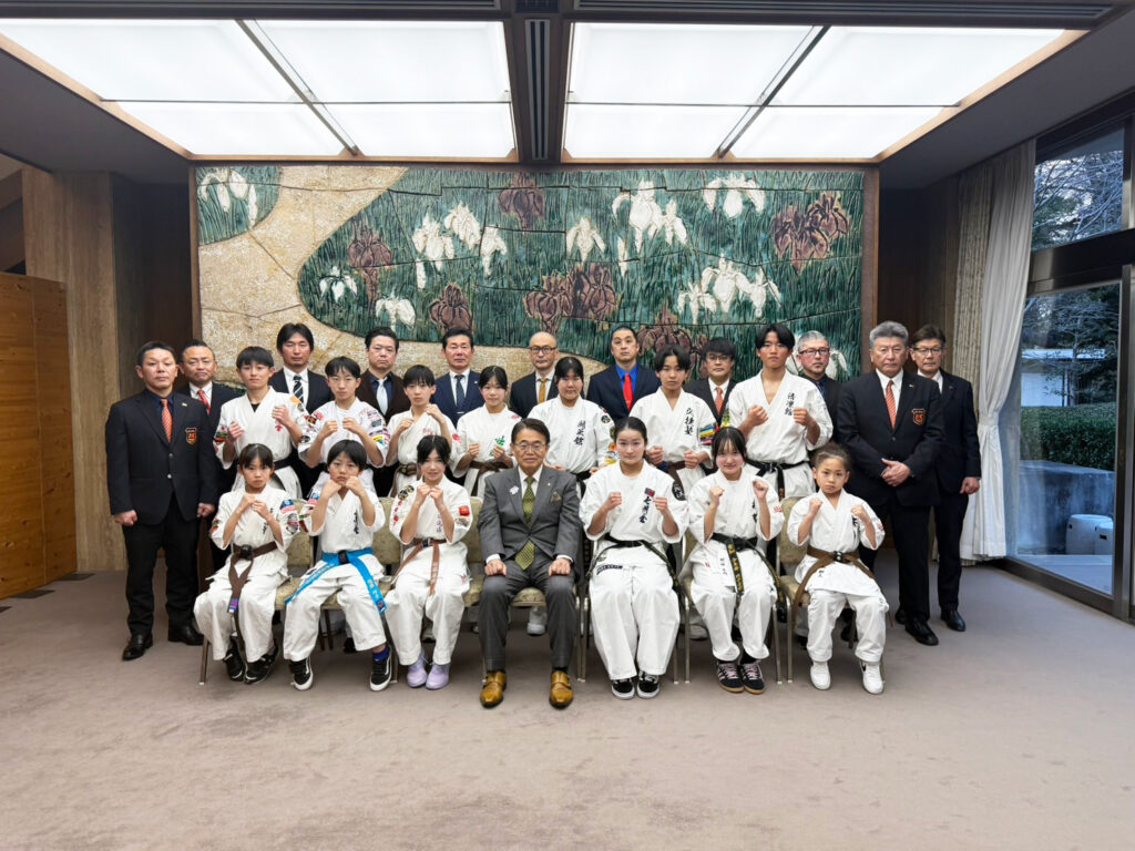 文部科学大臣杯第19回JKJO全日本ジュニア空手道選手権大会での優勝を、愛知県の大村知事にご報告いたしました。